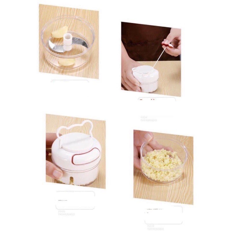 Cực dễ dàng, chỉ cần cho đồ vào, đậy nắp, kéo & thả phần dây kéo liên tục, dây kéo sẽ làm quay lưỡi cắt bên trong, xay nhuyễn đồ ăn không hề vất vả. Dùng được mọi lúc mọi nơi, ko cần điện.