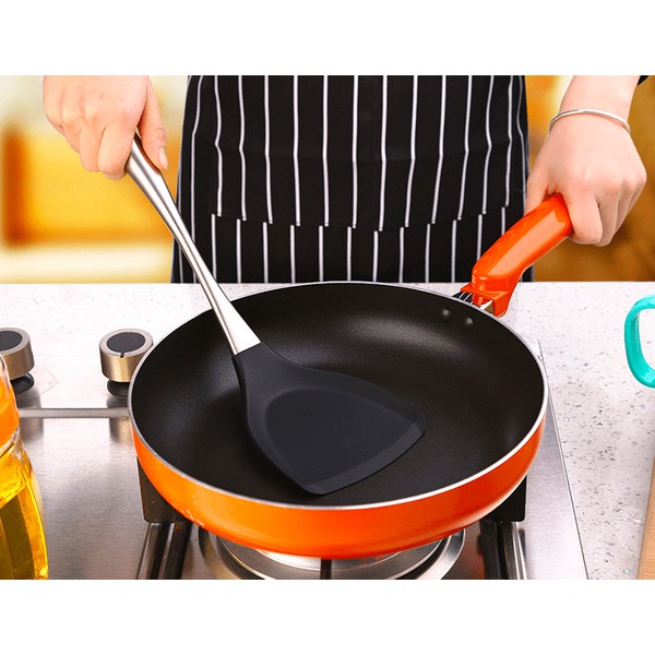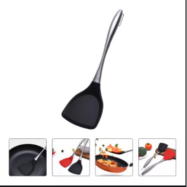 Dụng Cụ Xẻng Lật Thực Phẩm Bằng Silicon Có Tay Cầm Bằng Thép Không Gỉ Cao Cấp