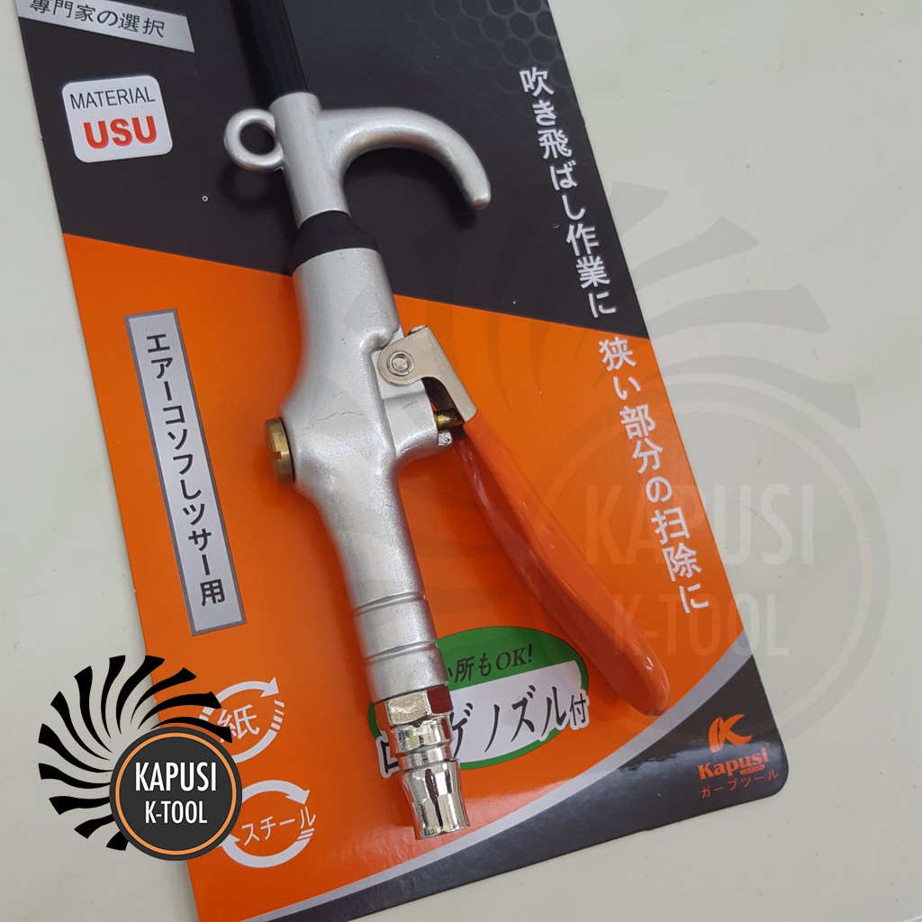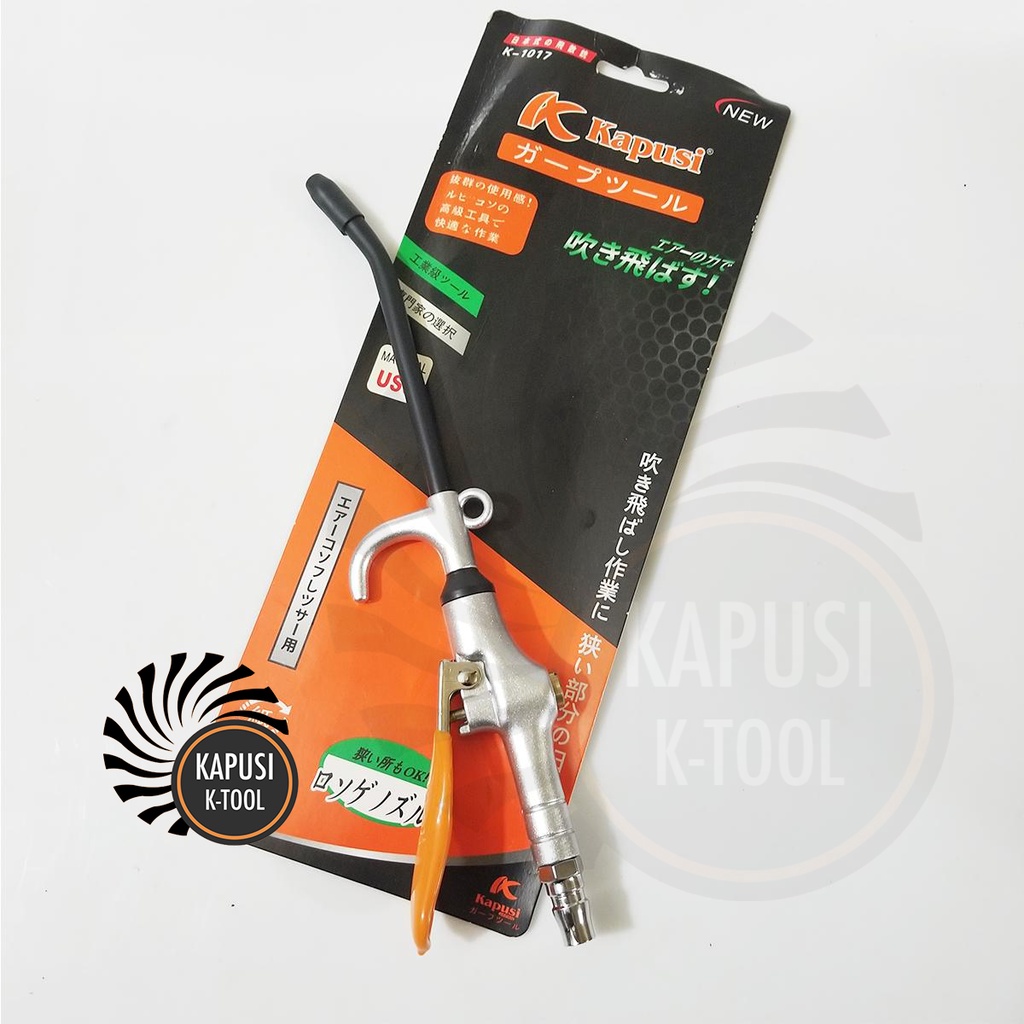 Súng xịt hơi xì khô mỏ dài thân hợp kim chịu áp 130psi Kapusi K-1017 là phụ kiện lắp vào máy nén khí để tạo ra một luồng khí lớn được ứng dụng vào các hoạt động kinh doanh, sinh hoạt hằng ngày như xì khô các vật dụng ẩm, thổi các mảnh vụn cứng đầu, làm sạch bụi,nước ở các vị trí bên trong không thể lau chùi bằng tay, ...Súng xịt khí xì khô và thổi bụi Kapusi K-1017