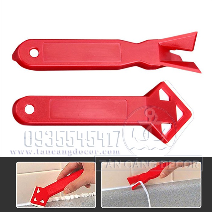 Những vết keo bám dính trong góc việc làm sạch khá khó khăn, nhất là nếu không có dụng cụ làm sạch chuyên dụng. Với dụng cụ chuyên dụng thì việc làm sạch lại khá dễ dàng. Dụng cụ được thiết kế 2 lưỡi có thể sử dụng đẩy hoặc tiến để cạo sạch những mảng keo silicone cũ. Với thiết kế chuyên dụng vì vậy các lưỡi bám sát vào bề mặt của 2 cạnh của góc.