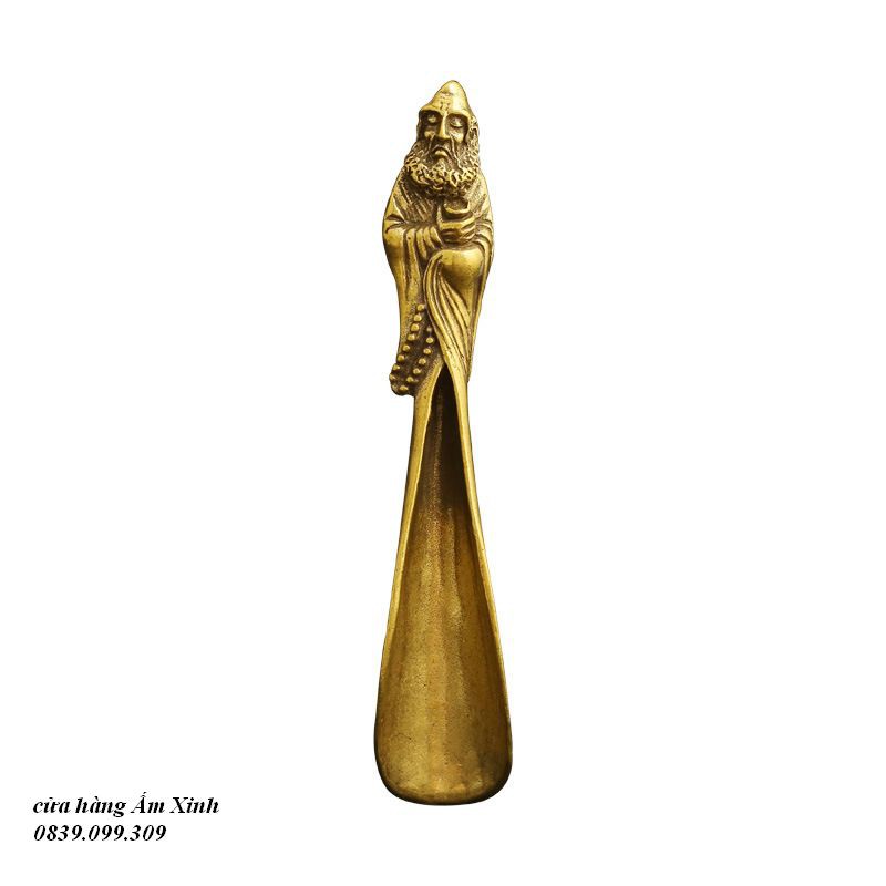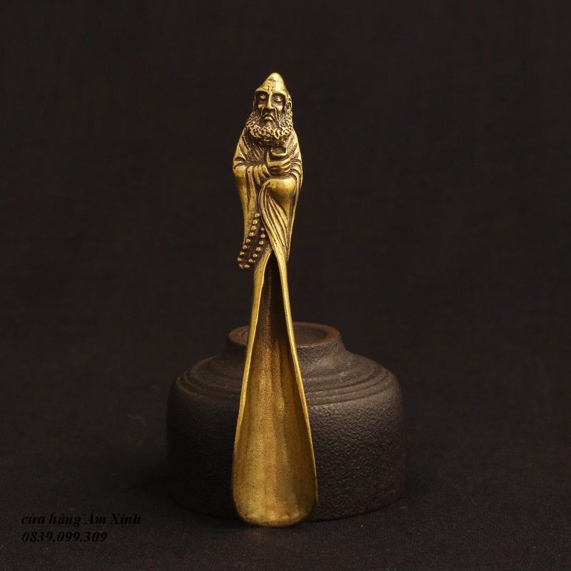 Dụng cụ (thìa, muỗng) xúc trà bằng đồng đúc nguyên khối hình Đạt ma sư tổ# dụng cụ xúc trà bằng đồng