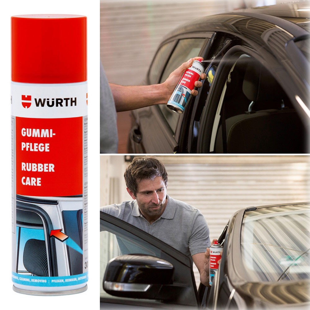 Chai xịt bảo dưỡng ron cao su Wurth Rubber Care 300mlSản phẩm dùng để bảo vệ lốp xe, thảm sàn cao su, lót đệm, đệm cao su, ron kính xe,…bảo dưỡng các thành phần cao su trên xe ô tô và duy trì độ đàn hồi, chống nứt, chống bạc màu và bảo vệ trước tác động của môi trường. Các chi tiết như ron cửa, ron kính xe, vòng đệm cửa, lá lúa gạt nước,…