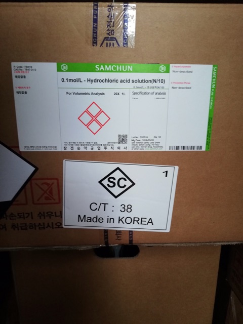 Dung dịch chuẩn độ 0.1mol/L Hydrochloric aci.d N/10 HCl 0.1N Samchun Hàn Quốc chai 1 lít H0416 dung dịch chuẩnLiên hệ: 0944.999.025 (có zalo)
