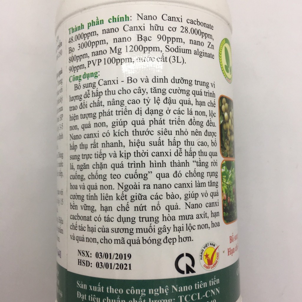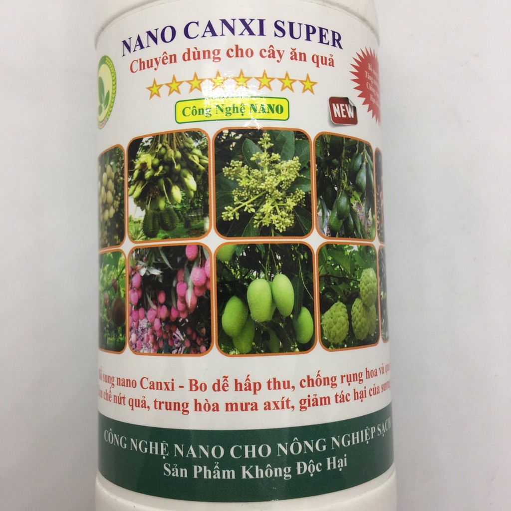 Giới thiệu Dung dịch Nano Canxi Super dùng cho cây ăn trái 500ml chống sương muối, mưa axit, chống rụng hoa trái non, nano bạc