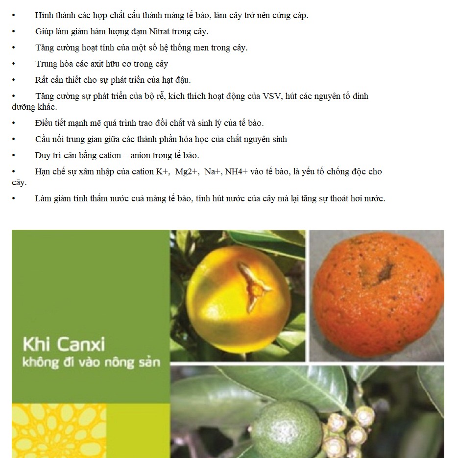 Ngoài ra Nano canxi làm tăng cường tính liên kết giữa các tế bào giúp vỏ quả bền vững, hạn chế nứt, nổ quả.