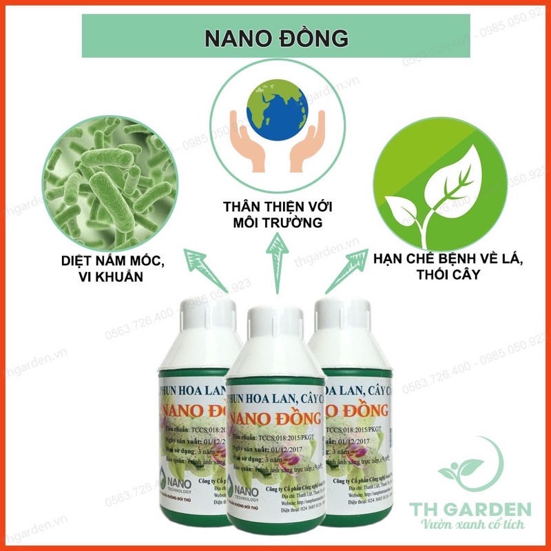 Xịt phun hoa lan cây cảnh Nano đồng có khả năng diệt vi khuẩn, vi rút, nấm mốc và hạn chế các bệnh liên quan tới thối, rụng lá. Sản phẩm thân thiện với môi trường và sức khoẻ con người.