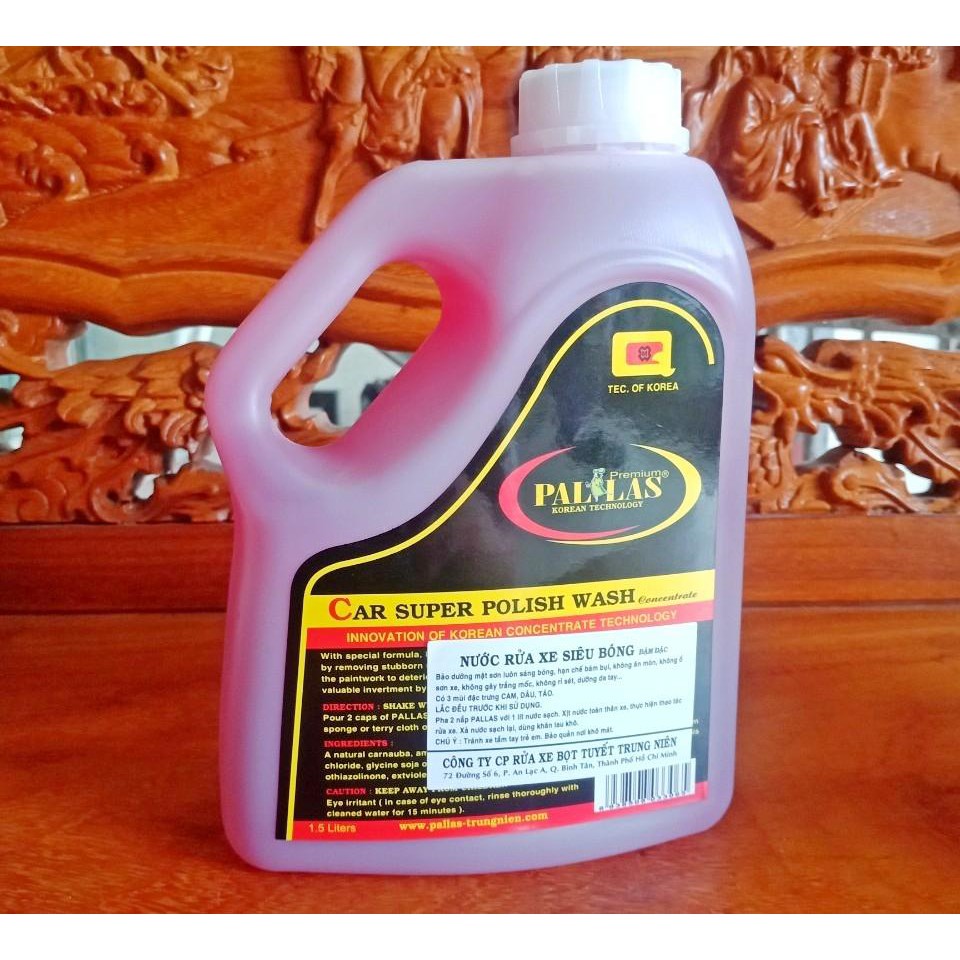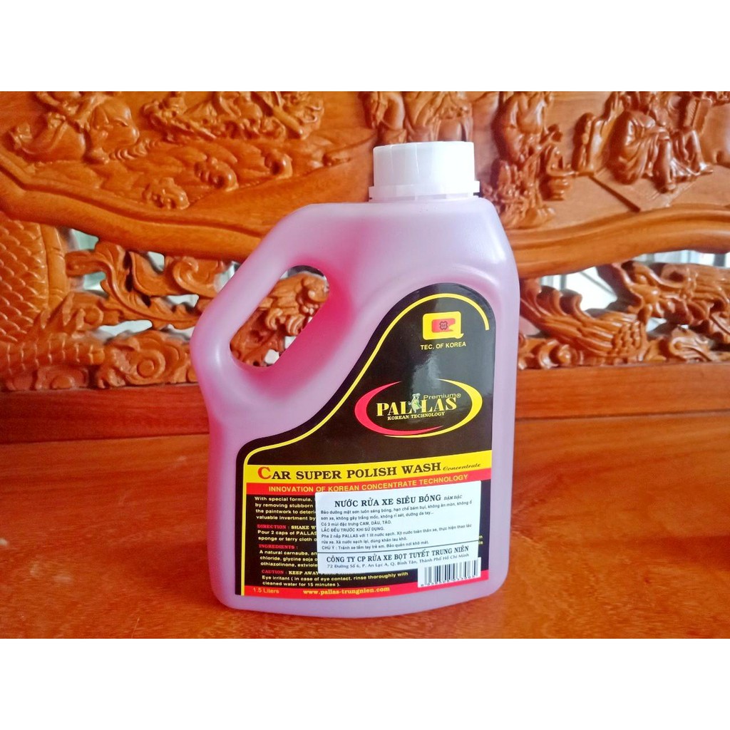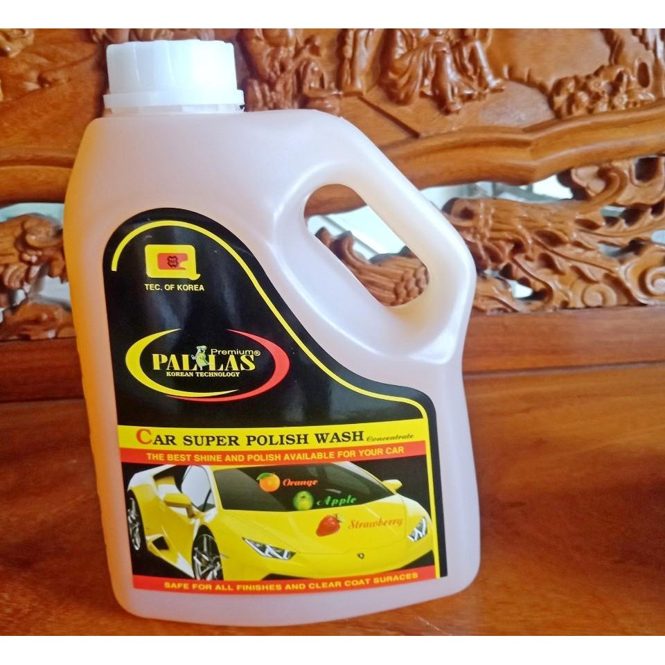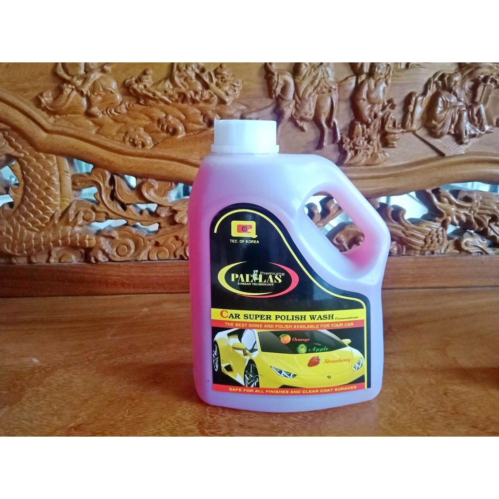 Dung dịch rửa xe siêu bóng Pallas 1.5L bảo dưỡng mặt sơn luôn sáng bóng, hạn chế bám bụi, không ăn mòn, không ố sơn xe, không gây trắng mốc, không rỉ sét, không gây ảnh hưởng da tay, mùi hương dâu thơm mát, dễ chịu.Hướng dẫn sử dụng: