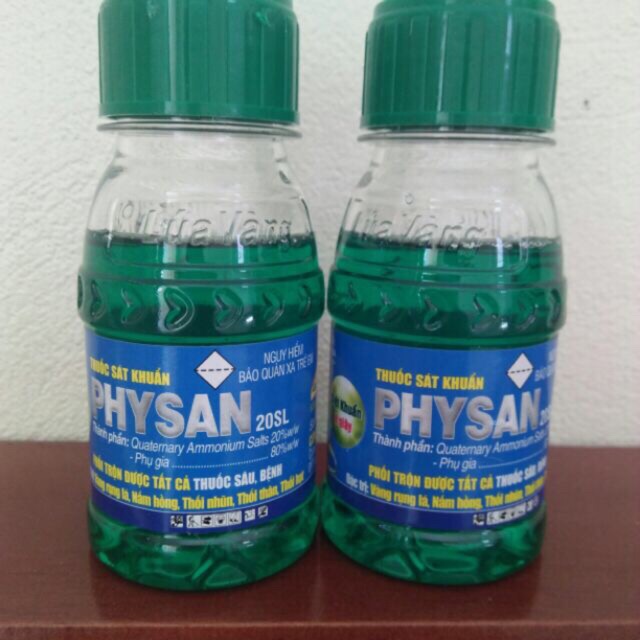 Physan 20SL 100mlDung dịch sát khuẩn trừ nấm bệnh cây trồng Physan 20 SL chai 100ml Thuốc sát khuẩn Physan 20SL đặc trị THỐI NHŨN Chuyên đặc trị các bệnh : cháy bìa lá, thối nhũn, thối thân Hiệu quả ngay sau khi phun 10 phút nên tránh được rủi ro do trời mưa