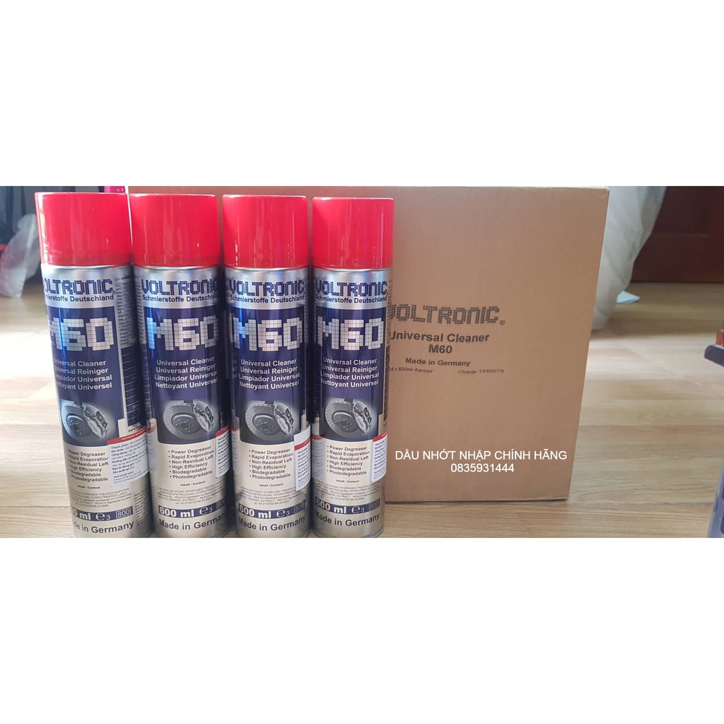 Ô tô > Dầu nhớt và phụ gia ô tô > Mỡ & Chất bôi trơn || Dung dịch tẩy rửa đa năng (Xên, sích, ốc nhớt, lốc máy): Voltronic m60 Universal Cleaner 600mlCòn hàng