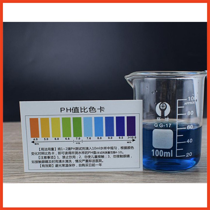 Cách sử dụng: 2-3 giọt thuốc thử này trong dung dịch thử 30ML , lắc đều, bạn cũng có thể giảm một nửa lượng dung dịch thử, giảm 1-2 giọt thuốc thử, theo cách kiểm soát thẻ màu và màu hiển thị, bạn có thể đọc Độ pH của dung dịch tương ứng thu được.
