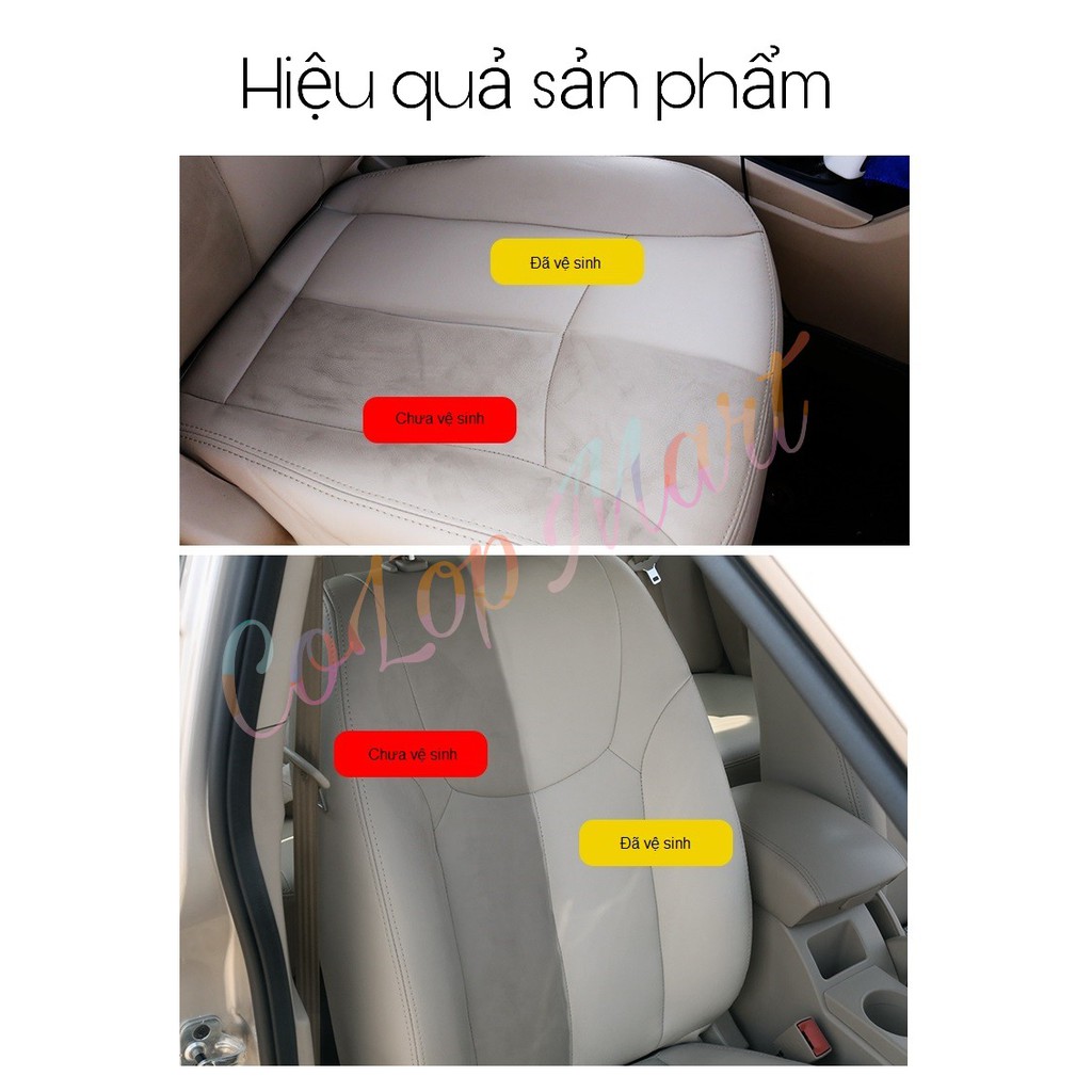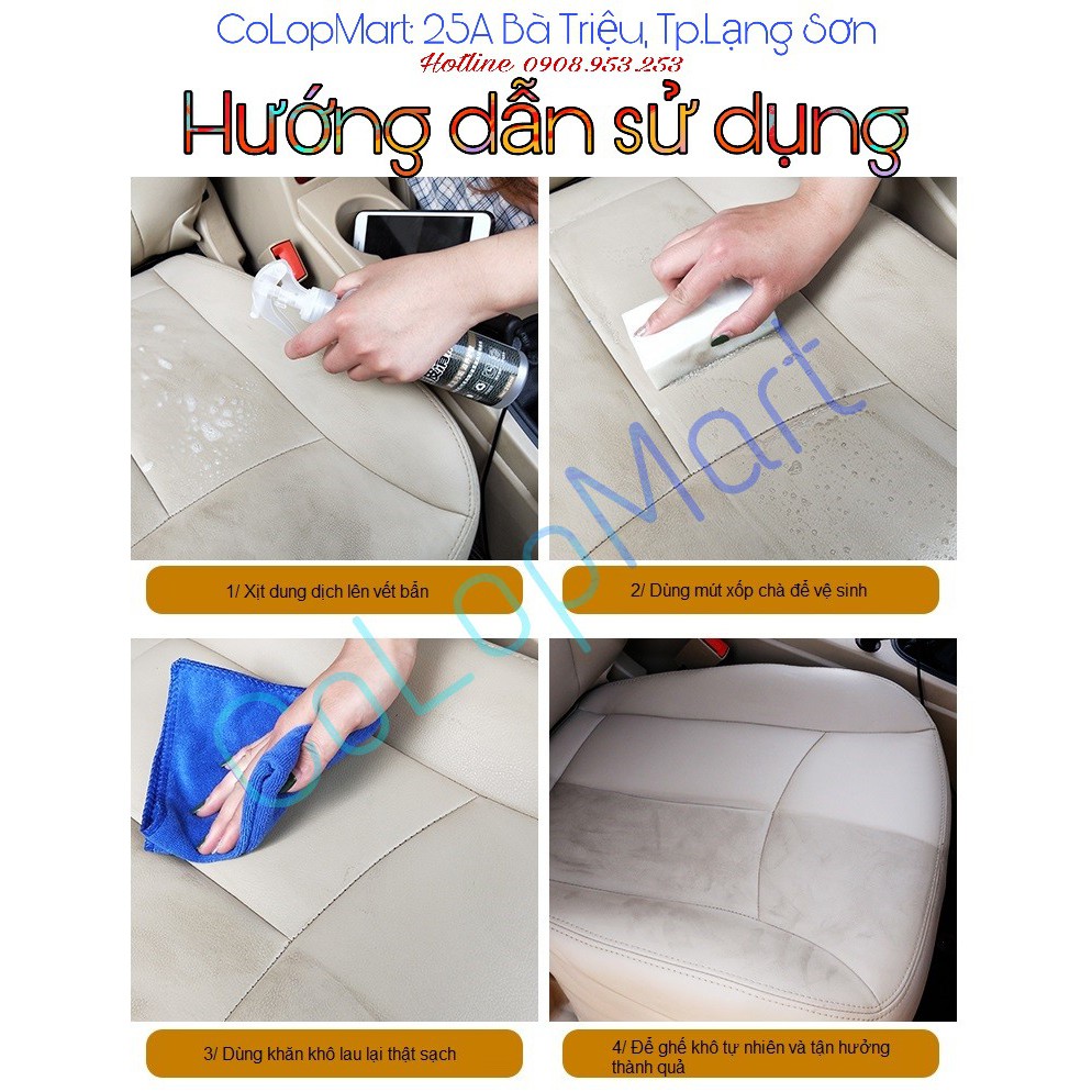 Dung dịch chuyên dùng cho ghế da xe hơi, ghế sofa chất liệu daVệ sinh tất cả các vết bẩn do bùn đất, mồ hôi, dầu mỡ...