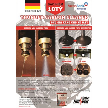 Để đạt được hiệu quả tối ưu trong việc tăng cường sức mạnh động cơ cho xe, các chuyên gia khuyên bạn nên bổ sung Thunder Carbon Cleaner theo chu kì 3.000 miles/lần (khoảng 4.800 Km). Khi sử dụng, bạn nên rót dung dịch vào bình xăng trước khi bơm xăng theo tỉ lệ 1 lọ/5 lít và 2 lọ/10 lít dung tích bình xăng. “Của bền tại người”.