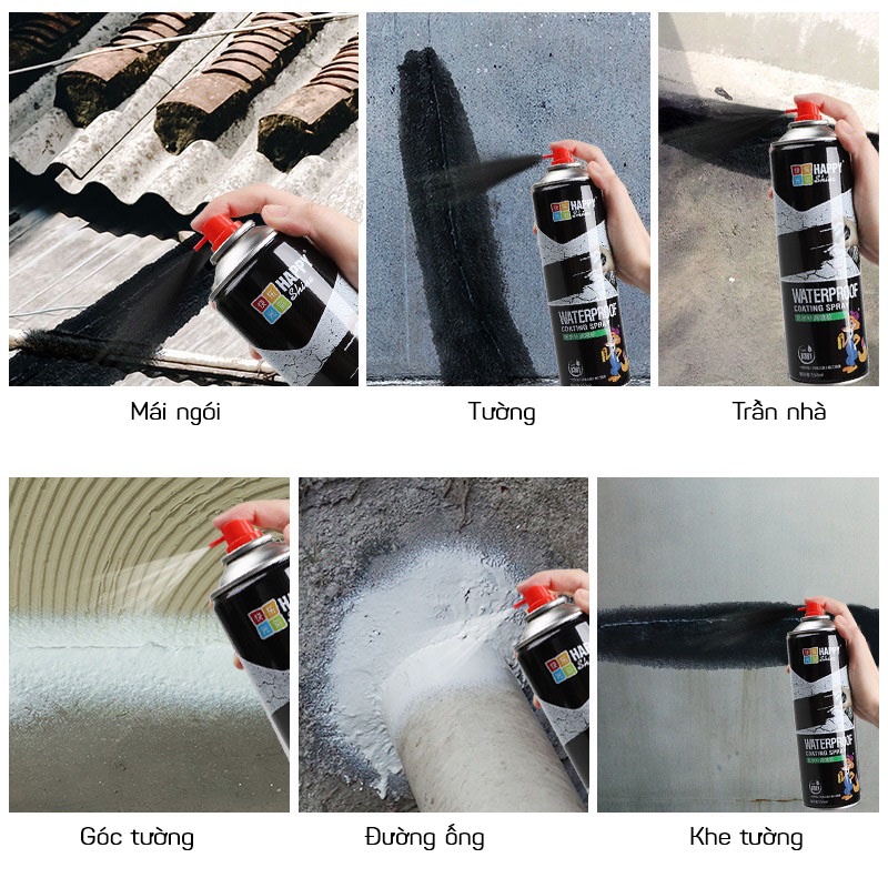 Giới thiệu Dung Dịch Xịt Chống Thấm, Chống Dột Cho Mái Nhà, Tường, Ống Nước HAPPY 550ml