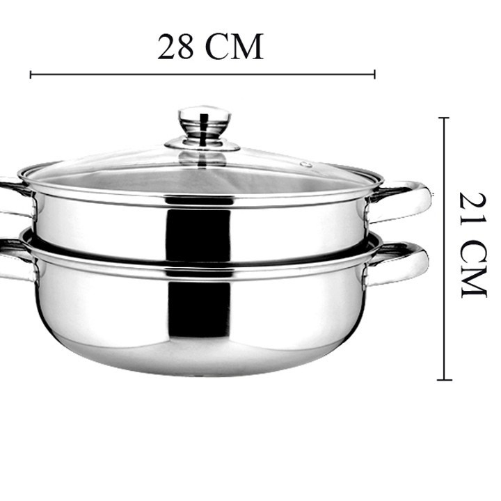 Nhà cửa & Đời sống > Dụng cụ nhà bếp > Nồi || [DÙNG ĐƯỢC BẾP TỪ] Bộ Nồi xửng hấp gà nấu xôi 2 tầng Inox nắp kính cao cấp - DATHANG1688Còn hàng