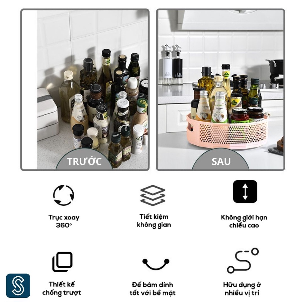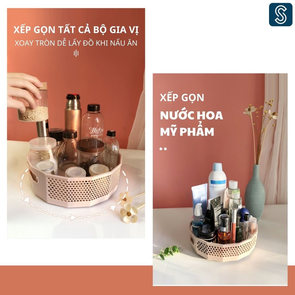 Đựng gia vị khay xoay 360 độ SETHOME đa năng khay đựng gia vị mỹ phẩm đồ trang điểm son giá để đồ nhà tắm phòng vệ sinh