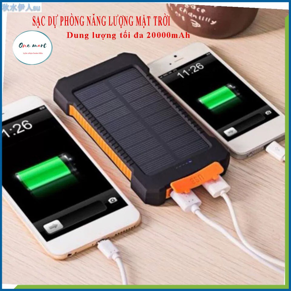[Dung Lượng Khủng] Sạc dự phòng 20000mAh sử dụng năng lượng mặt trời 18w sạc nhanh 2 cổng USB