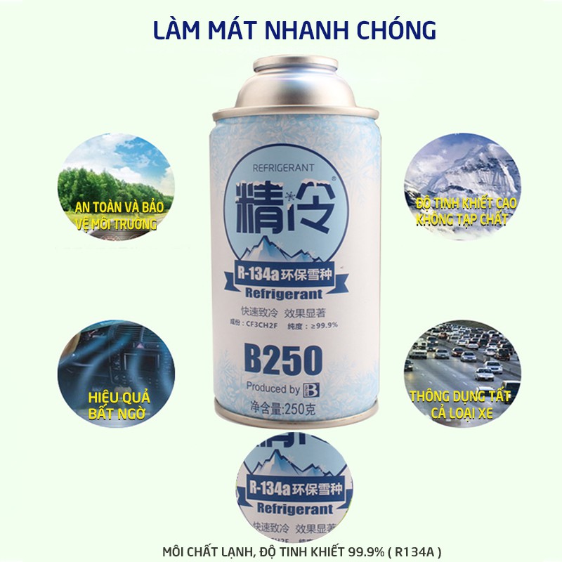 Giới thiệu sản phẩm: Dung môi làm lạnh BOTNY Refrigerant 250g, chất làm lạnh đặc biệt cho máy điều hòa trên ô tô, khí gas làm lạnh chuyên dụng cho xe hơi, xe tải_B-1166