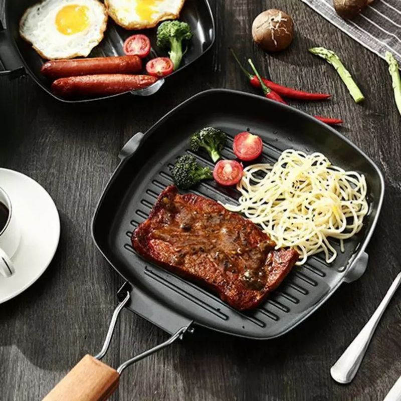 - Mặt chảo hình vuông giúp cùng lúc nướng được nhiều món hơn.
