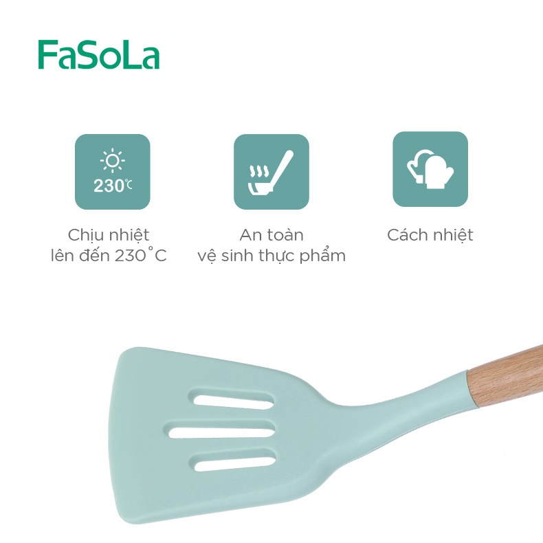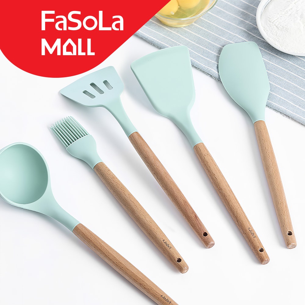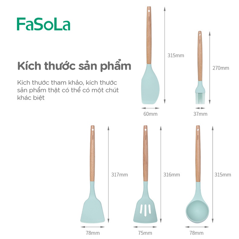Thương chào các bạn đến với thương hiệu “FASOLA - Hàng gia dụng phong cách Nhật Bản”Tên sản phẩm: Bộ đồ dùng nấu ăn tay cầm gỗ