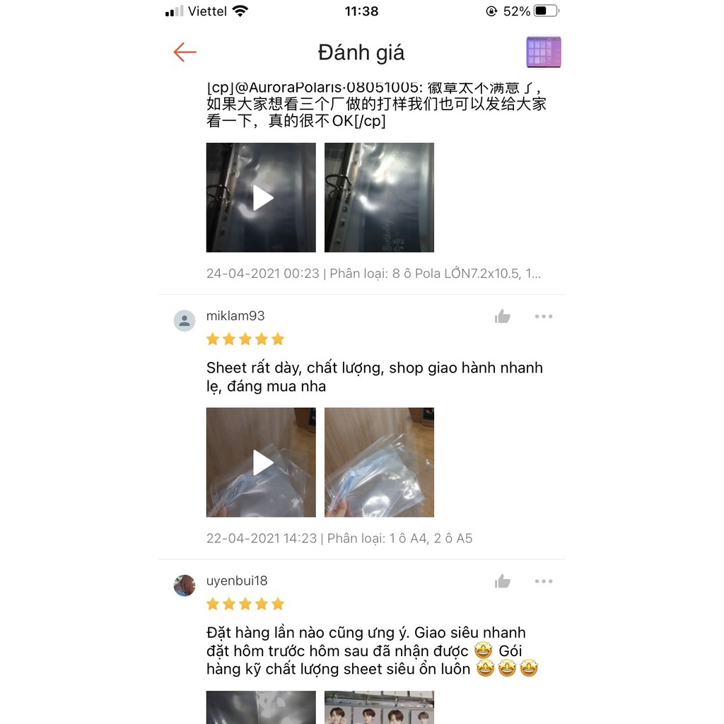 4- Thế mạnh của Shop KAS: Sheet/ Binder/ Zip Hologram/ Sleeve Meet/ Toploader- Bao bì- Túi- DIY