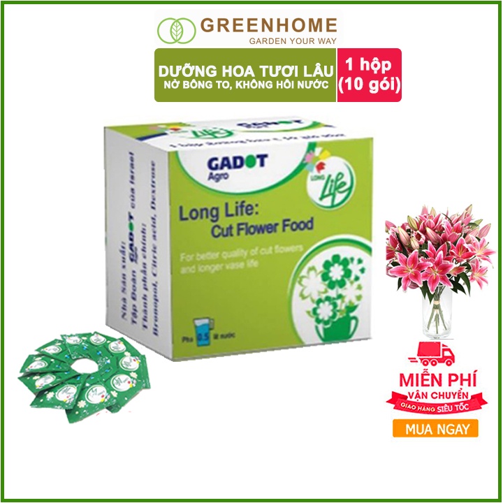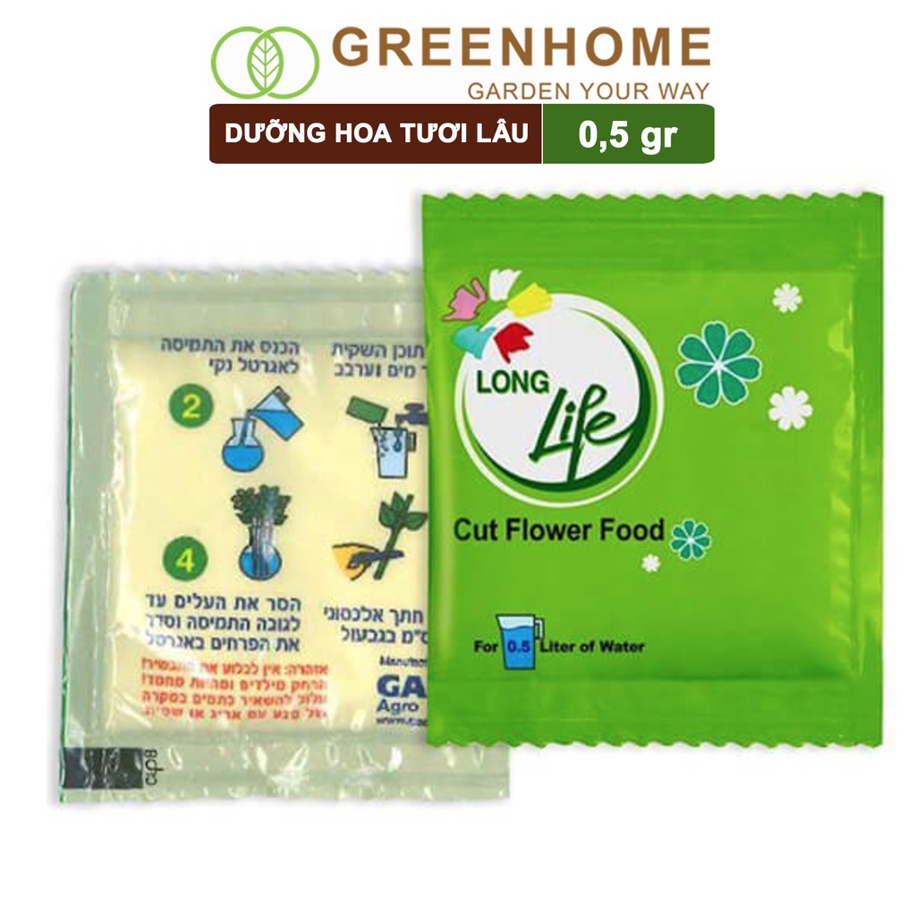 Nhà cửa & Đời sống > Làm vườn > Phân bón || Dưỡng hoa lâu tàn Long Life, gói 5gr, hoa tươi lâu, nở bông to, không bị hôi nước |GreenhomeCòn hàng