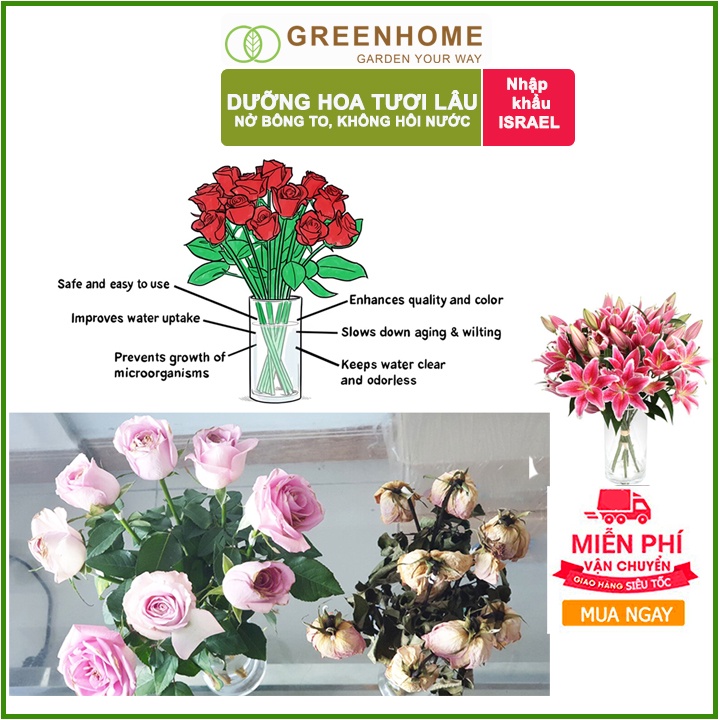 Giới thiệu Dưỡng hoa lâu tàn Long Life, gói 5gr, hoa tươi lâu, nở bông to, không bị hôi nước |Greenhome