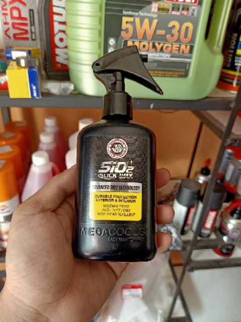 MEGACOOLS SiO2 SLICK WAX với Công nghệ tiên tiến mới được làm giàu với phân tán SiO2 Silica rất hiệu quả để phủ và bảo vệ khỏi các vết trầy xước nhỏ, chống thời tiết, chống bụi bẩn và không in dấu vân tay. An toàn để sử dụng trên các thiết bị điện tử như màn hình TV, máy tính xách tay, điện thoại di động, cũng như trên các vật liệu như chrome, cao su, nhựa, da và bánh xe hợp kim. CÁCH SỬ DỤNG: