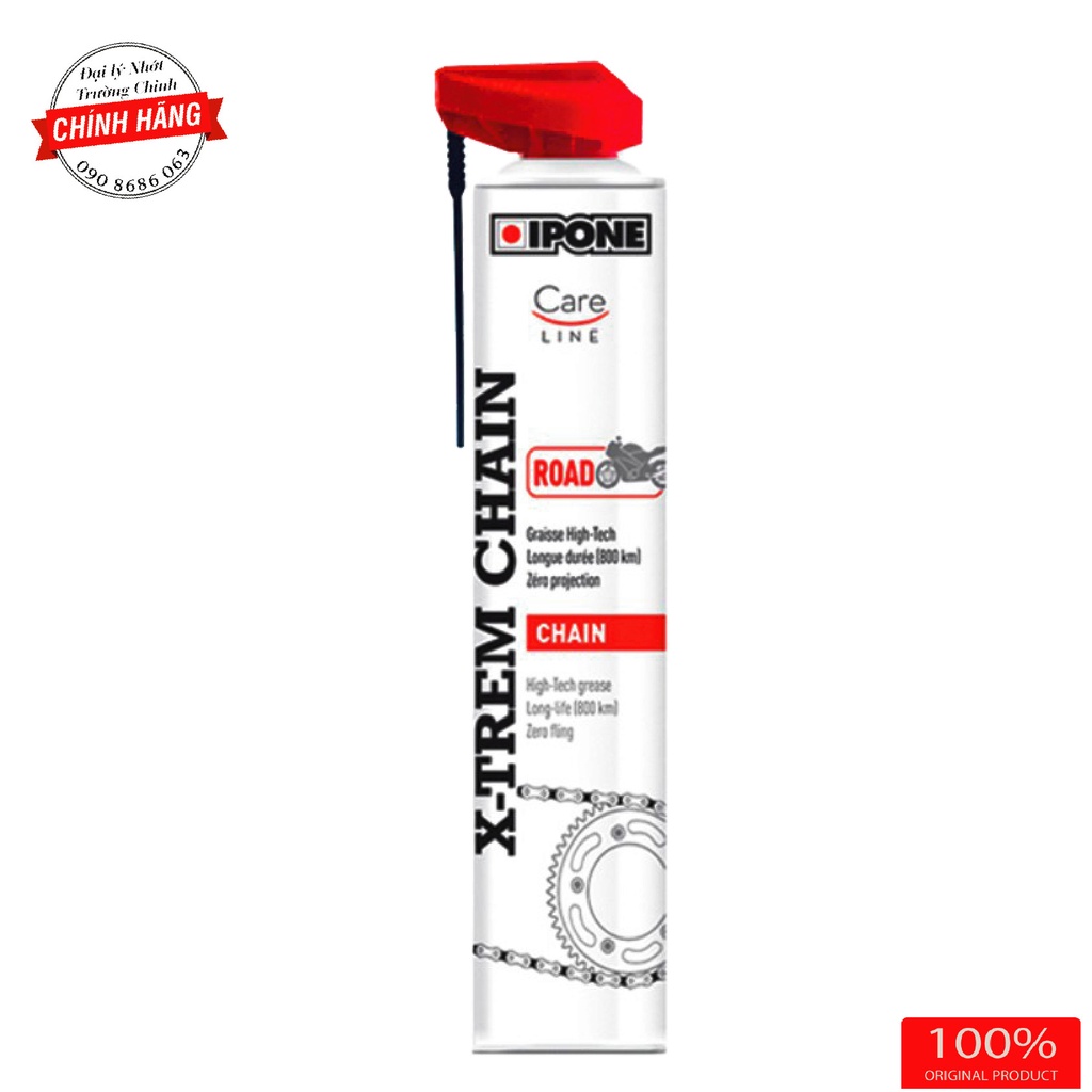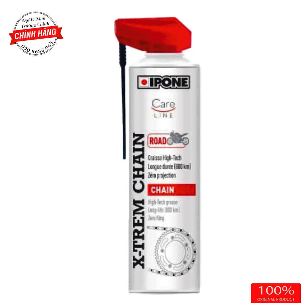 Chai bôi trơn IPONE X-TREM CHAIN ROAD là loại mỡ xích bám dính tối ưu dành cho xe mô tô đường trường ,không văng, trong điều kiện khắc nghiệt
