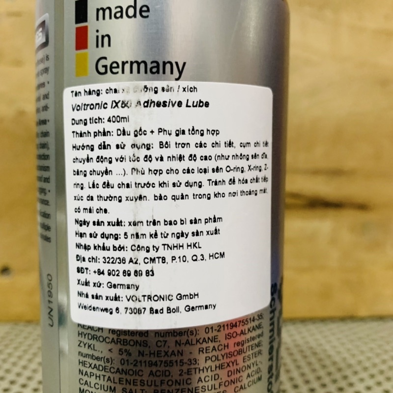 Ô tô > Dầu nhớt và phụ gia ô tô > Mỡ & Chất bôi trơn || Dưỡng Sên - Bôi Trơn Xích Voltronic IX50 Adhesive Lube - Chain Lube Spray Professional Series 400ML - Made in GermanyCòn hàng