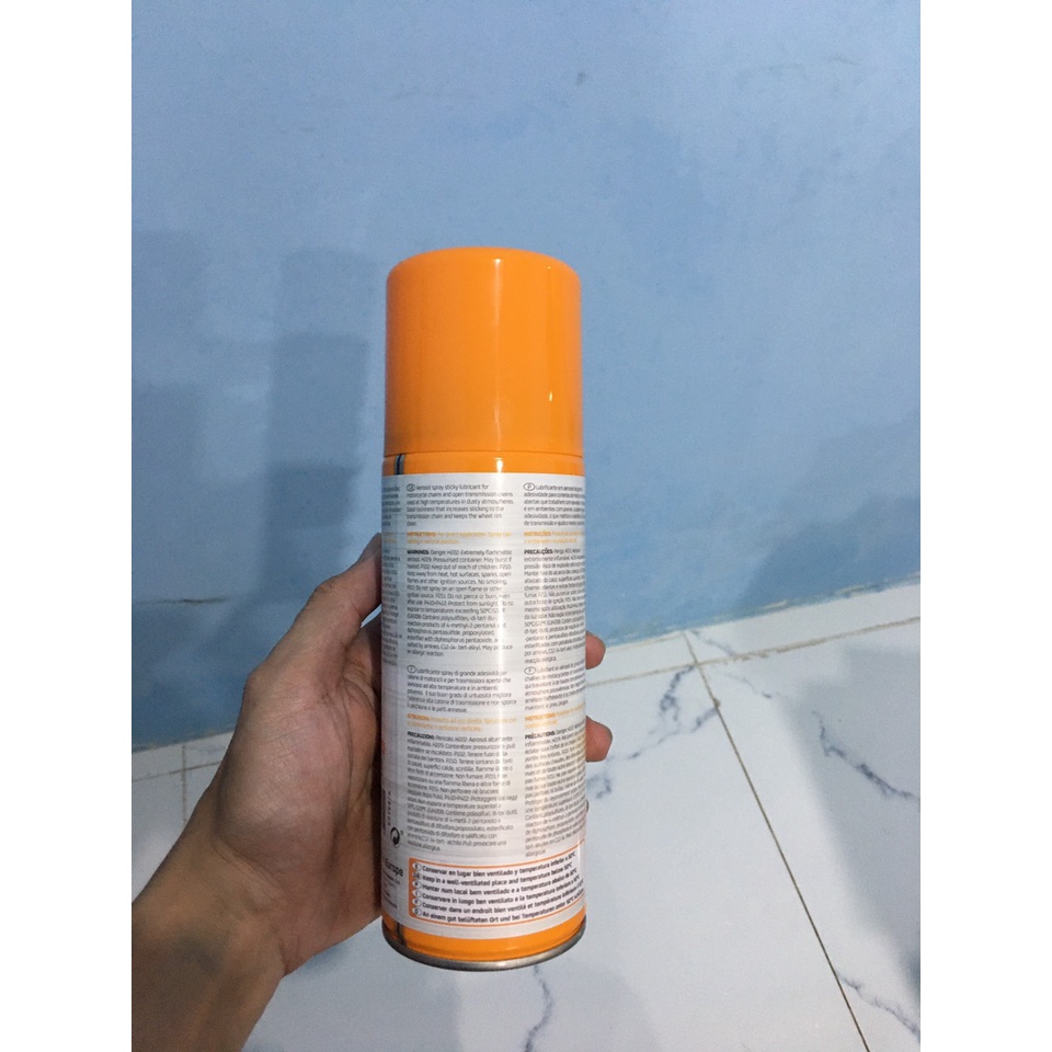 – Sau khi vệ sinh sên, Lắc đều chai xit sên Repsol Moto Chain và xịt đều lên tất cả các mắt của sợi sên. Để khô trong vài phút trước khi chạy xe.