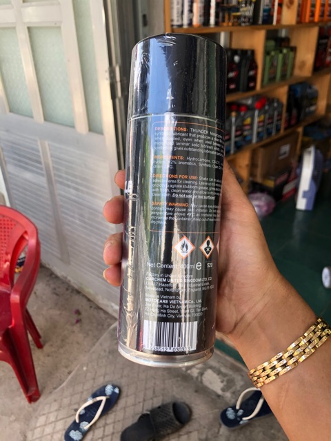 -Chờ 5p cho thấm đều xịt thêm 1 lớp nữa đe dung dịch bôi trơn đều sên ( lưu ý : dùng bìa carton che phía trong để không bi văng khi xịt )