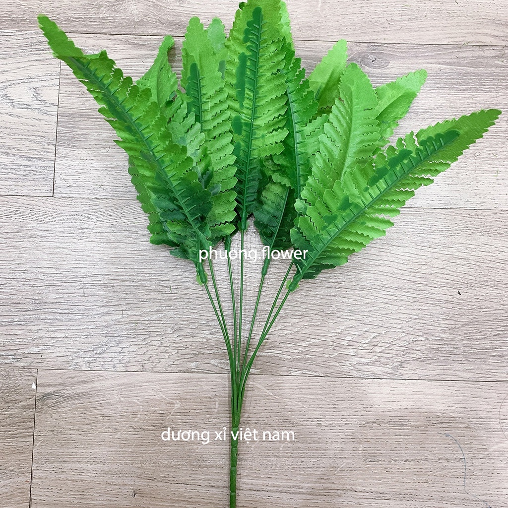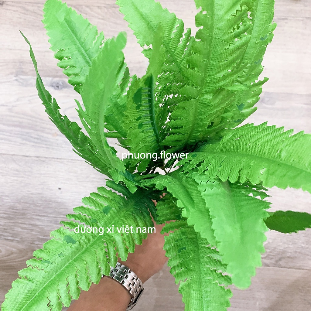 Cây dương xỉ giả dương sỉ bằng vải nhựa 7 cành 17 lá dài cao 42 cm dùng cắm chậu hoặc trang trí cho không gian thêm xanh