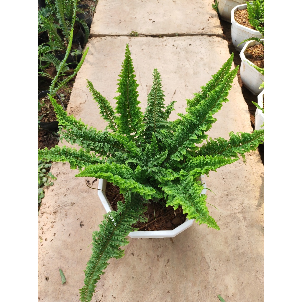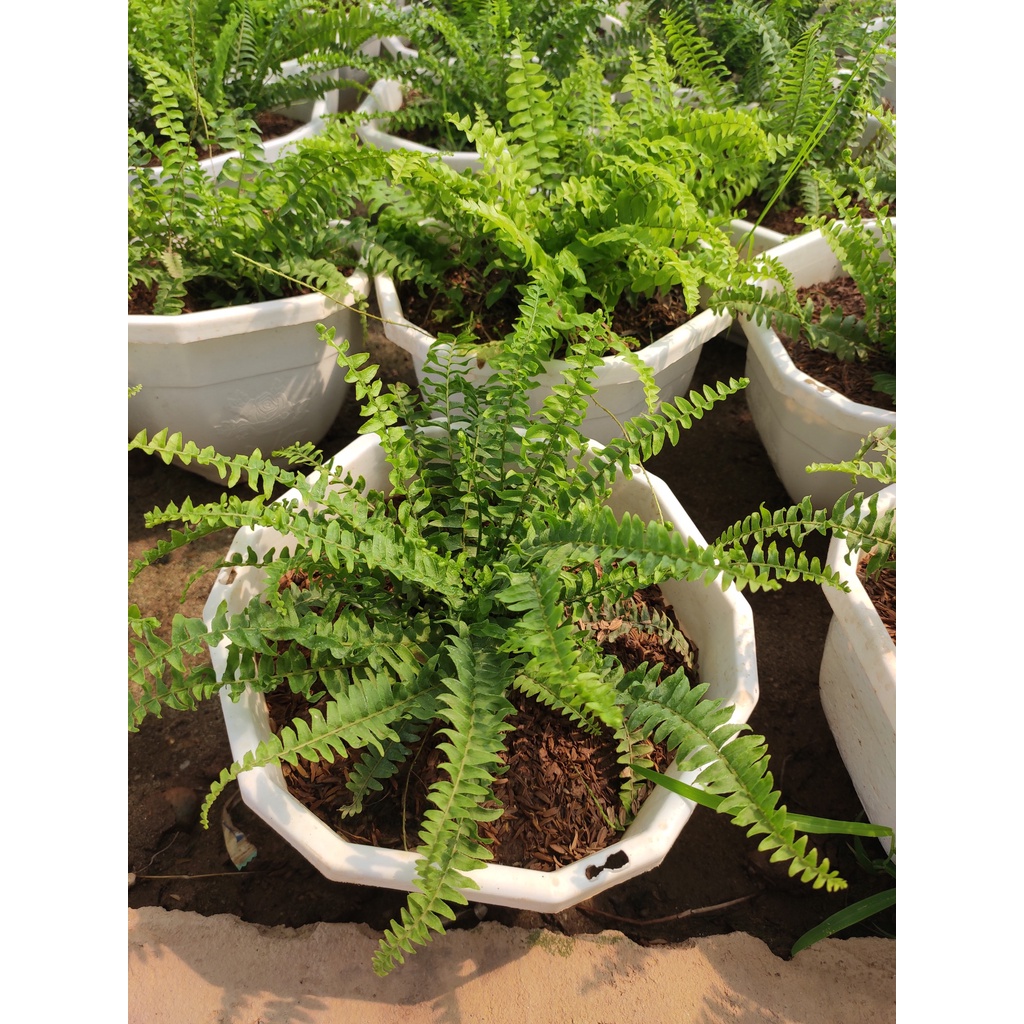 Dương xỉ thái: hàng chậu cây nhỏ và chậu cây to