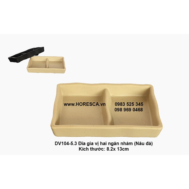 DV104-5.3 Dĩa tương nhám 2 ngăn 5.3" (Nâu Đá)
