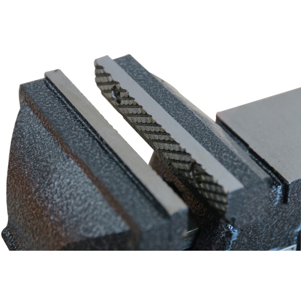 -Bên hông của Ê tô có tay xoay linh hoạt có để di chuyển qua lại để kẹp và giữ chặt vật. Ở dưới là mâm xoay linh hoạt và chân đế chắc chắn tạo sự cân bằng Ê tô và an toàn khi giữ, kẹp đồ vật ở nhiều góc độ.