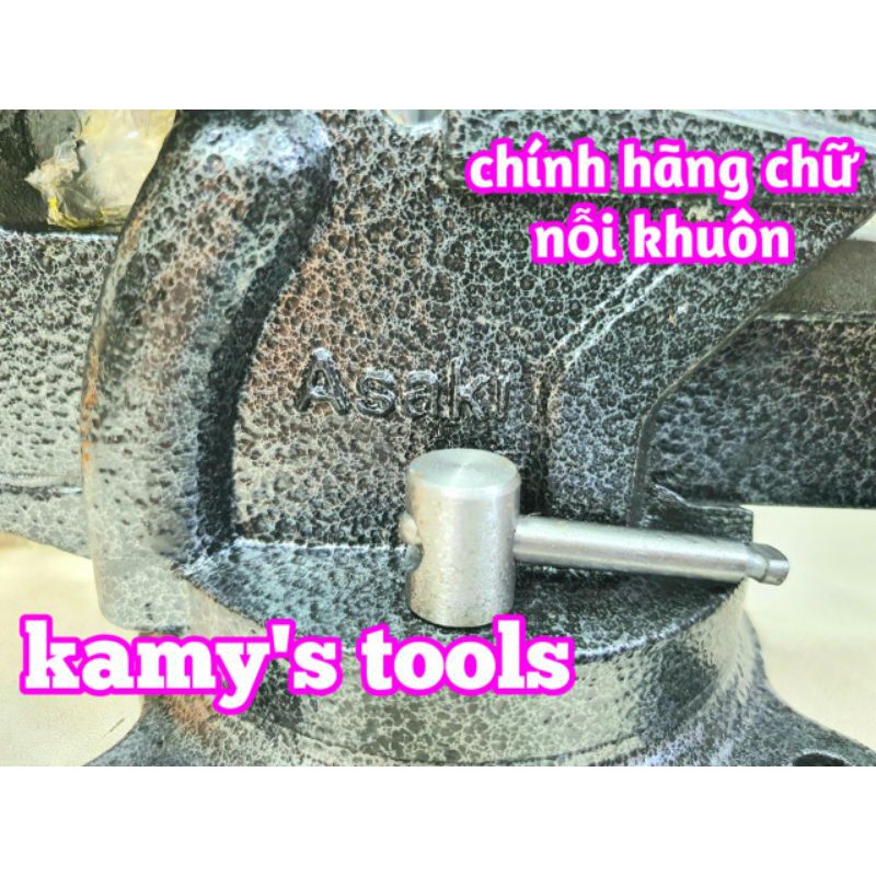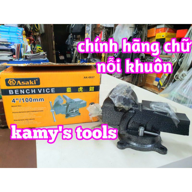 Ê tô bàn nguội xoay Asaki Ak-667 4 inch chính hãng với thương hiệu asaki nổi tiếng hàng chính hãng được đổ khuôn chữ nỗi ASAKI trên thân không phải dán tem như các loại khác.Ê tô bàn nguội xoay Asaki Ak-667 4 inch chính hãng có bề ngang của ngàm kẹp là 100mm tương đương 4 inch và chiều cao là 123mm.