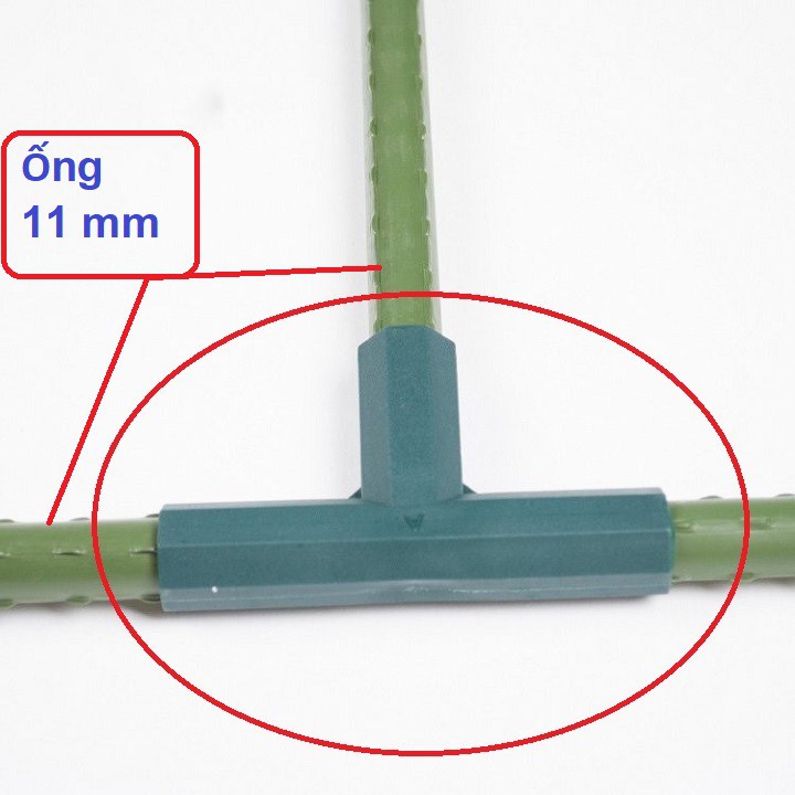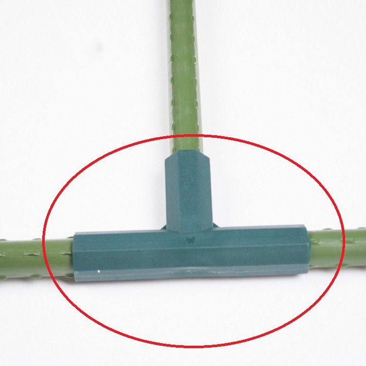 (E2) Khớp nối 3 chiều chữ T dùng nối ống thép bọc nhựa làm giàn leo.