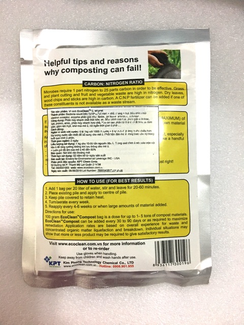 Nhà cửa & Đời sống > Làm vườn > Phân bón || Ecoclean COMPOST - VI SINH Ủ PHÂN COMPOST HỘ GIA ĐÌNH 100gr/ gói ( kèm HDSD chi tiết)Còn hàng