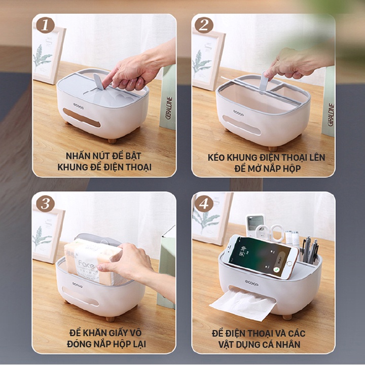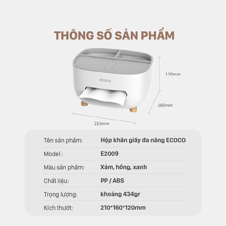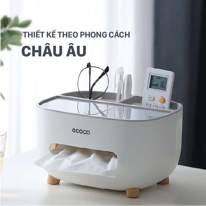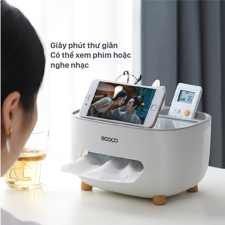 Nhà cửa & Đời sống > Sắp xếp nhà cửa > Hộp khăn giấy || (Ecoco SIÊU RẺ) Hộp giấy để bàn Ecoco có 2 ngăn cắm phụ kiện mã E2009Còn hàng