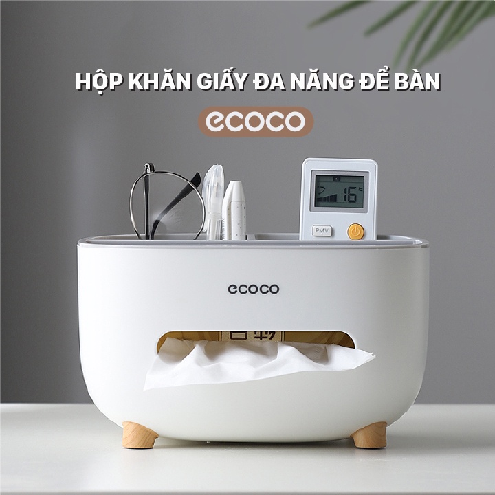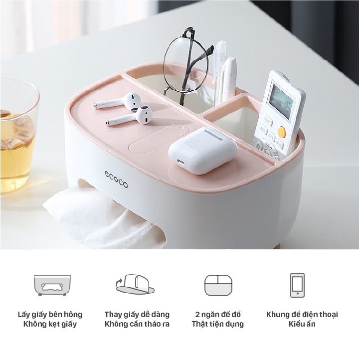 Hộp giấy ăn để bàn đa năng ECOCO 2 ngăn để điện thoại, mỹ phẩm, phụ kiện, nhựa PP an toàn sức khỏe E2009