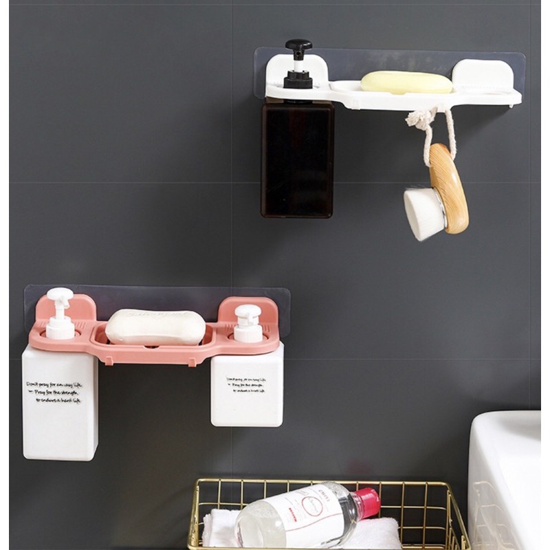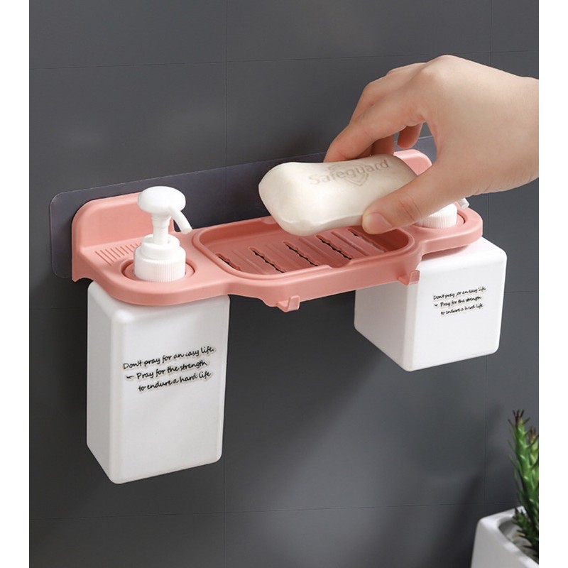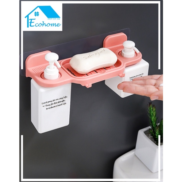 Nhà cửa & Đời sống > Đồ dùng phòng tắm > Kệ đựng xà phòng || Ecohome Kệ treo chai đôi kèm khay xà bông đi liền không khoan tường, siêu cường lực, bám chắc.Còn hàng