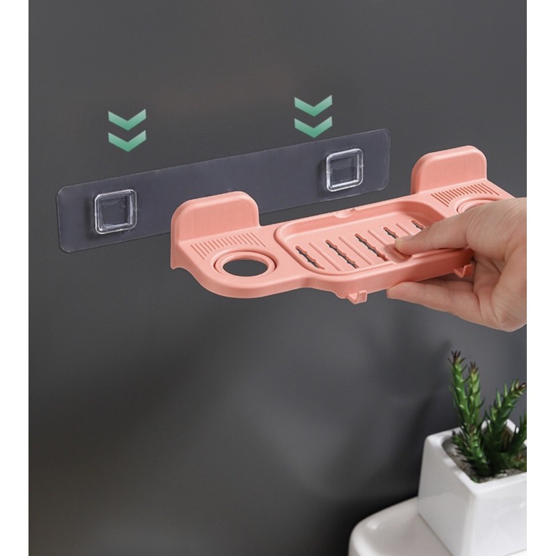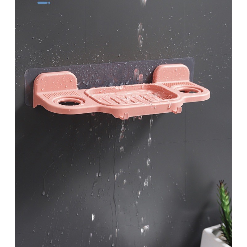 Kệ treo bình đôi kèm khay liền bánh xà bôngChú ý: Nếu trong trường hợp miếng dán dài hơn khay, banh hãy cắt đôi miếng dán phía sau nhé.