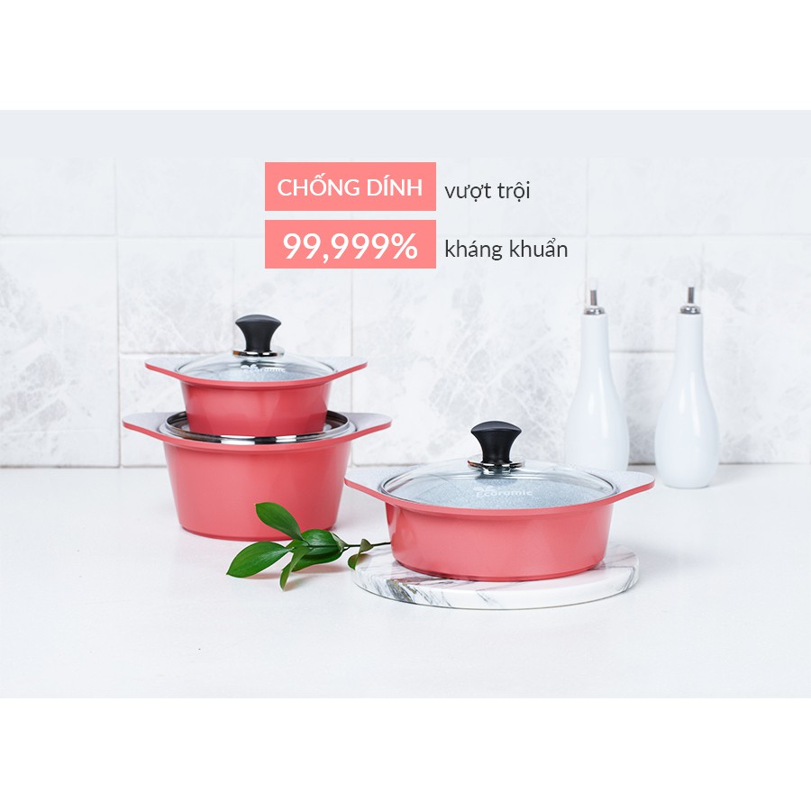 BỘ 4 NỒI CERAMIC ĐÚC NGUYÊN KHỐIĐến từ thương hiệu quen thuộc rất được tin dùng tại Hàn Quốc ECORAMIC (để logo vào)
