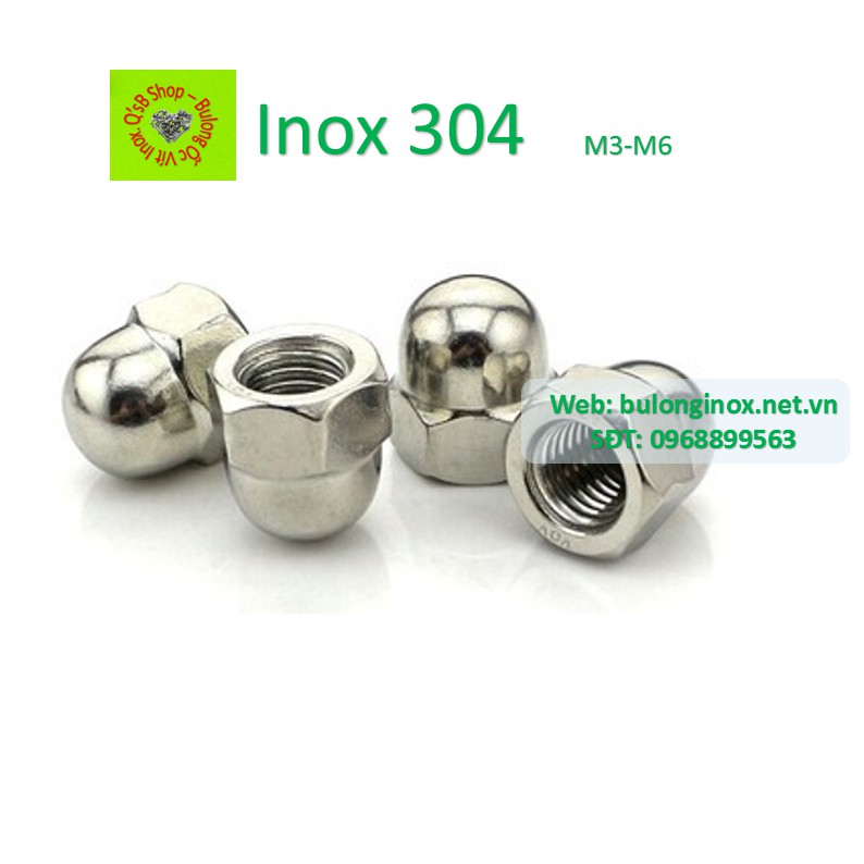 Nhà cửa & Đời sống > Dụng cụ & Thiết bị tiện ích > Dụng cụ > Khác || Ecu mũ inox M3 - M6, đai ốc mũ inox, ecu chỏm cầu inox, inox 304Còn hàng