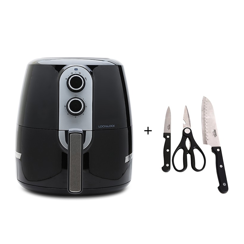 Nồi chiên không dầu Lock&Lock EJF151 5.2L 1800W (Đen) + Bộ dao kéo 3 món Rotel - HAPOS