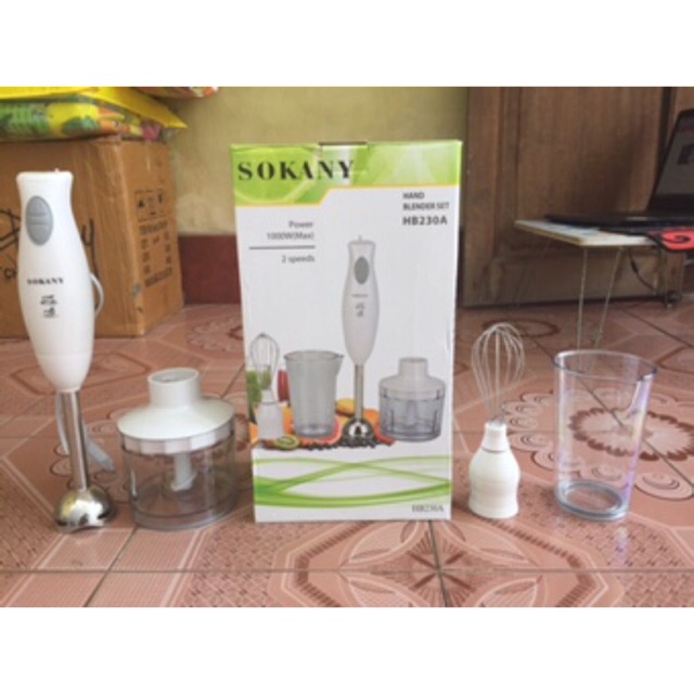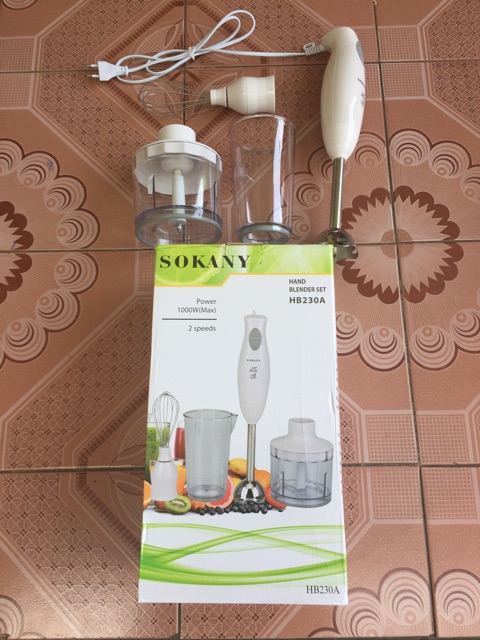 Giới thiệu sản phẩm Máy xay cầm tay đa năng Sokany HB230A (Trắng)Bạn có thể tự tay chế biến nhiều món ăn hoặc thức uống hấp dẫn hơn nhiều với máy xay cầm tay đa năng Sokany HB230A. Máy xay cầm tay đa năng Sokany HB230A được thiết kế đặc biệt tích hợp nhiều lưỡi dao phù hợp chế biến tất cả các loại thực phẩm khác nhau rau, củ , thịt cá ... Đây là một dụng cụ tuyệt vời cho bạn để chế biến các loại thực phẩm. Sản phẩm này có thể thay thế cho các loại máy khác như ép trái cây, xay sinh tố, đánh kem, nhào bột, xay nhuyễn các loại gia vị, đánh trứng vô cùng tiện lợi và tiết kiệm. Ngoài ra, bạn có thể pha chế các loại thức uống từ rượu, cà phê và chế biến các món khai vị hoặc chế biến các món bổ dưỡng hàng ngày cho các bé. Với máy xay cầm tay đa năng Sokany HB230A dường như việc bếp núc trở nên nhẹ nhàng hơn.