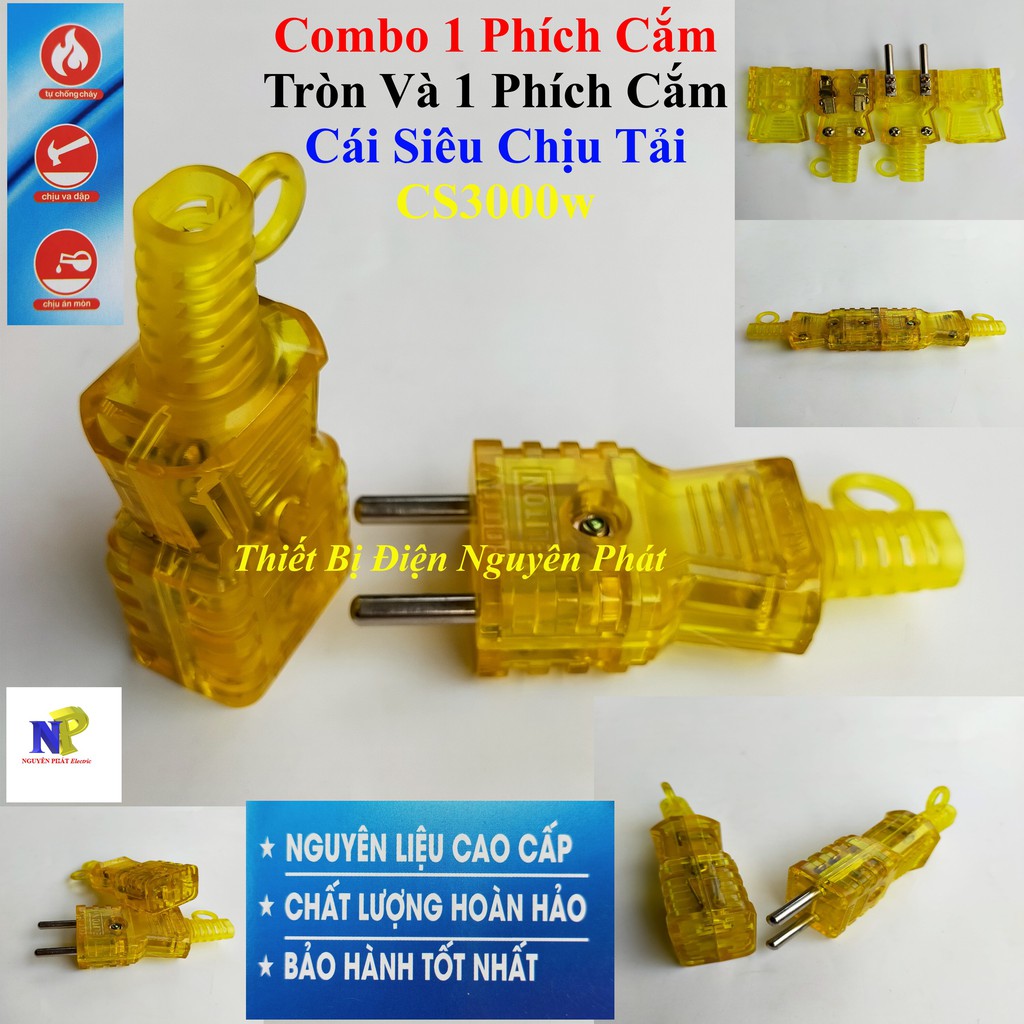 [ELITON] Combo 01 Phích Cắm Tròn Và 01 Phích Cắm Cái Siêu Chịu Tải CS3000w Nhựa PC Vàng Trong+ Sản phẩm có lớp vỏ bảo vệ,va đập mạnh không vỡ