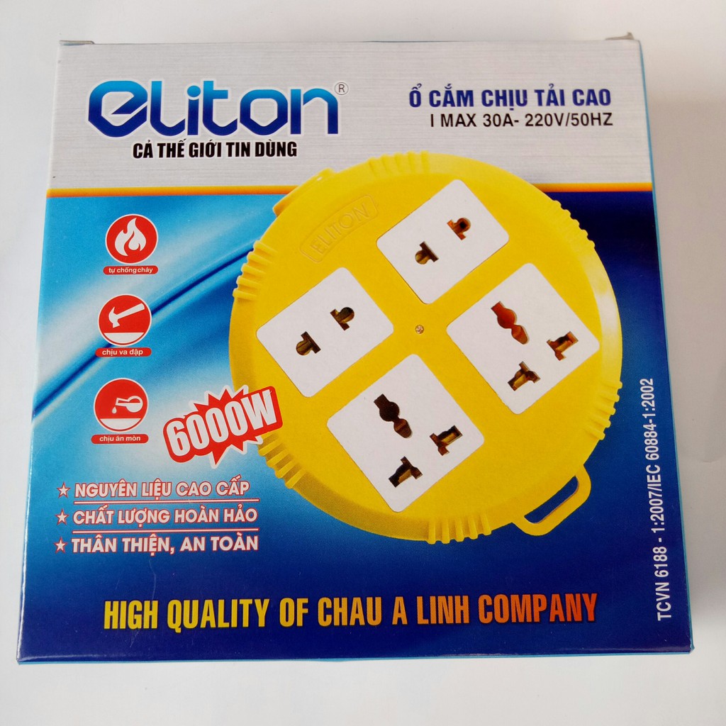 [ELITON] Ổ Cắm 4 Ổ Dạng Tròn Siêu Chịu Tải (Có Lõi Sứ Cách Điện) Không Dây CS6000w