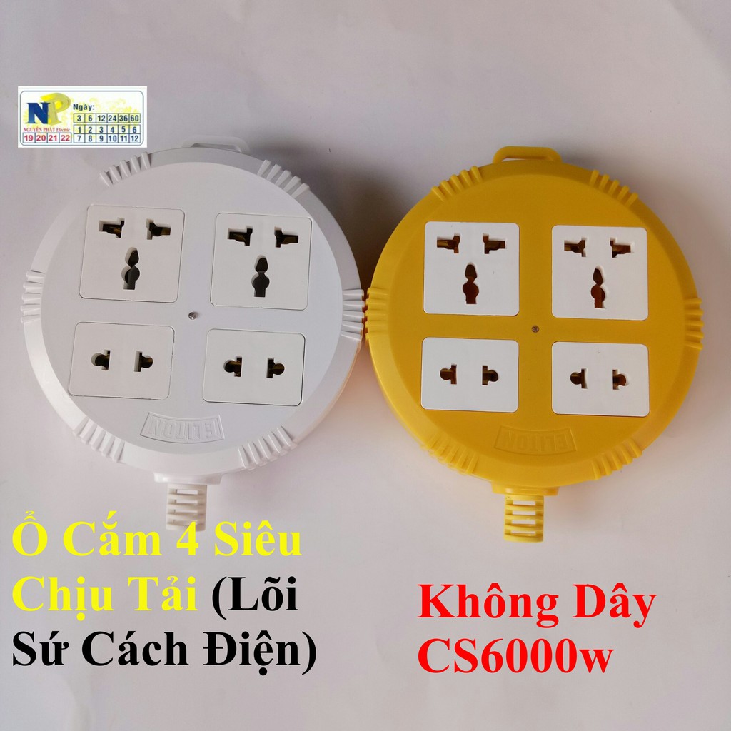 [ELITON] Ổ Cắm 4 Ổ Dạng Tròn Siêu Chịu Tải (Có Lõi Sứ Cách Điện) Không Dây CS6000w- Thiêt kế chắc chắn, bền bỉ, rất đẹp.