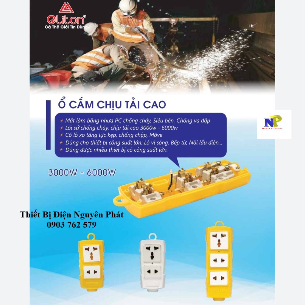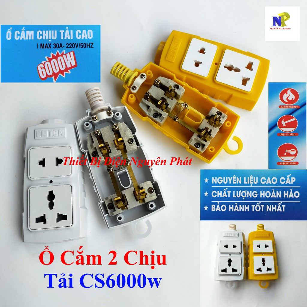 Thiết Bị Điện Gia Dụng > Mạch điện & Phụ tùng > Ổ cắm điện & Dây nối || [ELITON] Ổ Cắm Điện 2 Ổ Có Đa Năng Siêu Chịu Tải (Có Lõi Sứ Cách Điện) Không Dây CS6000wCòn hàng